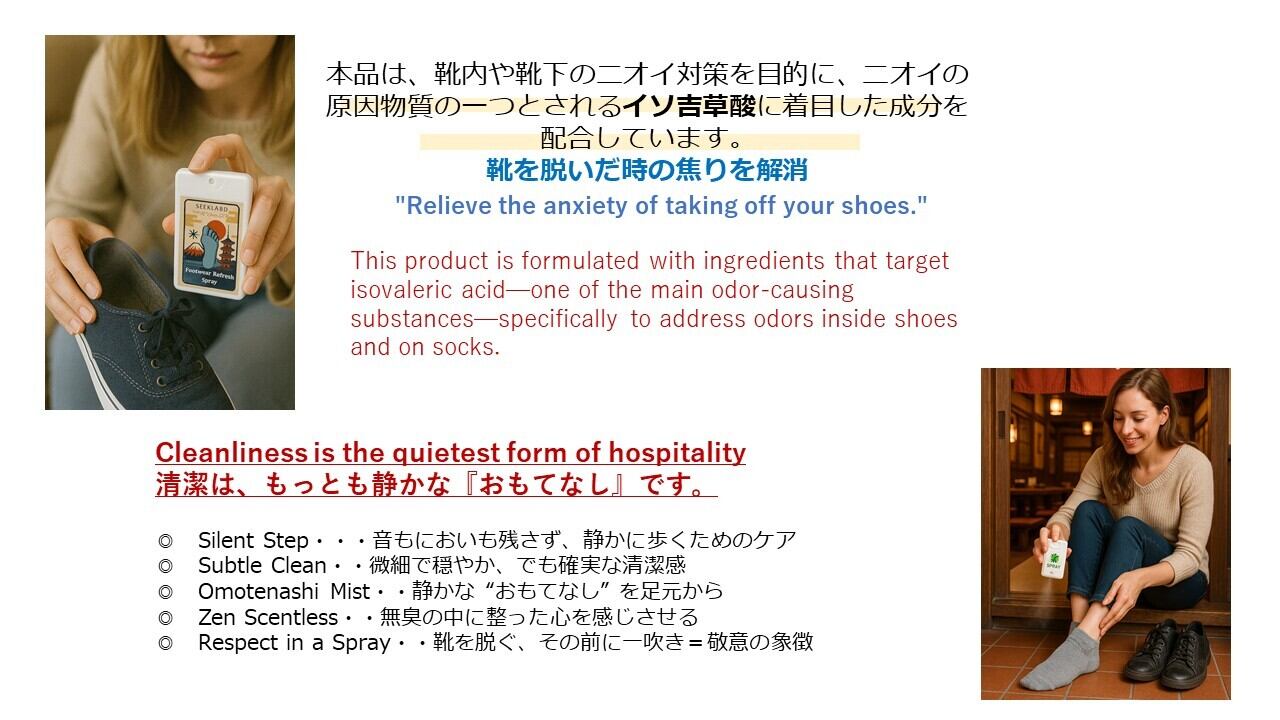 足臭の元『イソキチ草酸』を消臭。靴や靴下に、気軽に、さりげなく、まんべんに、